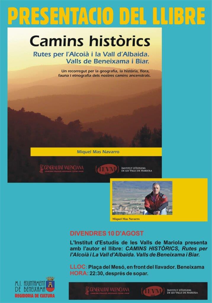 Presentació Llibre: «Camins Històrics. Rutes per l’Alcoià i la Vall d’Albaida. Valls de Beneixama i Biar», de Miquel Mas Navarro